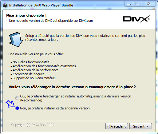 1)Vous devez déjà avoir le Plugin DivX installé sur votre ordinateur (version 1.5 pour windows ou version 1.4 pour mac fortement recommandé) sinon télécharger :